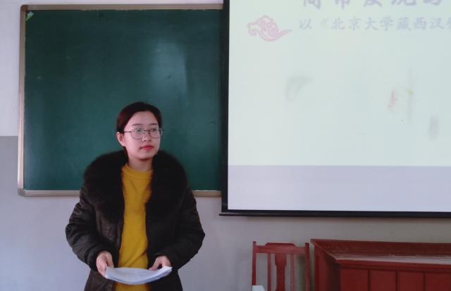 3月14日下午,由太阳成集团tyc33455cc研究生会主办的研究生学术论坛在3A207教室举行。此次论坛是本学期研究生学术论坛第一讲,主讲为2017级汉语言文字学硕士生窦晴,题目为“简牍文献发现与研究——以北京大学藏西汉竹书为例”。18级、17级全体研究生参加了本次听讲。